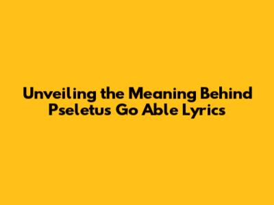 Unveiling The Meaning Behind 'Pseletu's Go Able' Lyrics