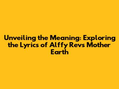 Unveiling The Meaning: Exploring The Lyrics Of Alffy Rev's Mother Earth