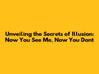 Unveiling The Secrets Of Illusion: Now You See Me, Now You Don't