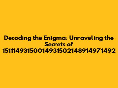 Alright, guys, let's dive headfirst into a real brain-teaser, shall we? We're going to break down the mysterious sequence of numbers: 15111493150014931502148914971492. Now, before you start hyperventilating, I want to assure you that we're going to tackle this step-by-step. The goal here isn't just to stare at these digits but to really understand what they might represent and how to potentially decipher any hidden meanings. Whether it's a date, a code, or just a random string of numbers, we'll cover various potential interpretations. This article is your ultimate guide, so grab a coffee, and let's unravel this numerical puzzle together! We'll explore diverse methods, from simple pattern recognition to more complex cryptographic analyses. Remember, the journey of understanding is far more important than a quick answer. So, stick around because there's a lot to unpack. We will explore every possibility and give you the tools and knowledge to explore this number. You don't need to be a math whiz to get the hang of this. It's more about logical thinking and the willingness to explore. It's like being a detective, except instead of a crime scene, we've got a series of numbers! The anticipation is building, and I hope you're as excited as I am to get started. By the end, you'll feel confident in your ability to approach similar numerical challenges. So, let's get those thinking caps on and start cracking this code! We'll look at the fundamental principles that govern number patterns. This includes looking at sequences, prime factorization, and even the potential for these numbers to be tied to mathematical constants or equations. We will not only look at possibilities but also provide practical examples and exercises.