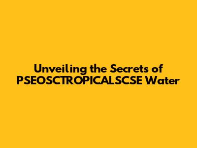 Unveiling The Secrets Of PSEOSCTROPICALSCSE Water