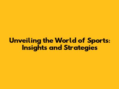 Unveiling The World Of Sports: Insights And Strategies