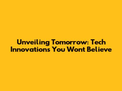 Unveiling Tomorrow: Tech Innovations You Won't Believe