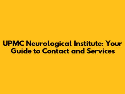 UPMC Neurological Institute: Contact Info & Services
