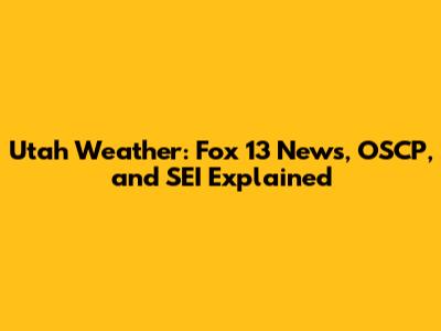 Utah Weather: Fox 13 News, OSCP, And SEI Explained