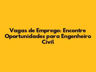 Vagas De Emprego: Encontre Oportunidades Para Engenheiro Civil