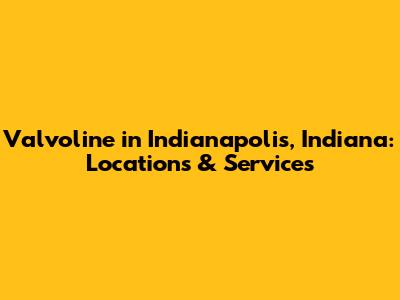 Valvoline In Indianapolis, Indiana: Locations & Services