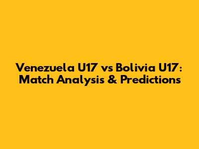 Venezuela U17 Vs Bolivia U17: Match Analysis & Predictions