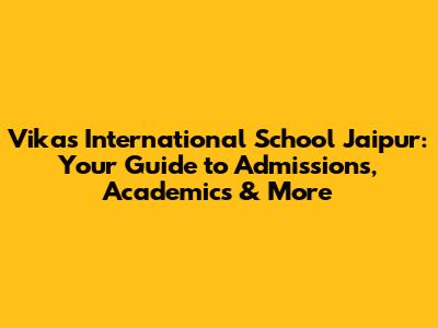 Vikas International School Jaipur: Admissions, Academics & More