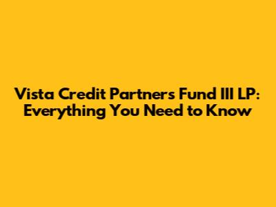 Vista Credit Partners Fund III LP: Everything You Need To Know
