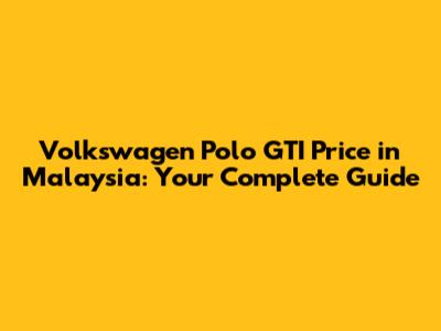 Volkswagen Polo GTI Price In Malaysia: Your Complete Guide