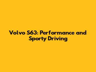 Volvo S60: Performance And Sporty Driving