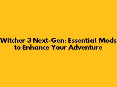 Witcher 3 Next-Gen: Essential Mods To Enhance Your Adventure