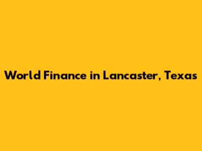 Let's dive into the world of finance right here in Lancaster, Texas! Whether you're a long-time resident or new to the area, understanding your financial options is super important. World Finance is one of the companies you might come across when you're looking for a loan or financial assistance. This article will explore what World Finance offers, how it can help, and other local options you should consider.