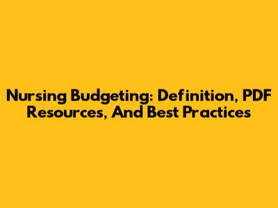 Nursing Budgeting: Definition, PDF Resources, And Best Practices