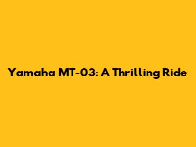 Yamaha MT-03: A Thrilling Ride