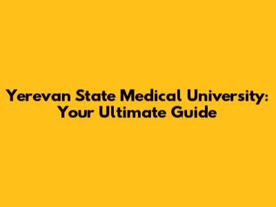 Yerevan State Medical University: A Complete Guide