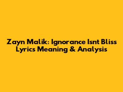 Hey guys! Ever stumbled upon a song lyric that just hits you right in the feels and leaves you pondering its deeper meaning? Well, Zayn Malik's "Ignorance Isn't Bliss" is one of those tracks. This song, packed with emotion and introspection, delves into the complexities of relationships, personal growth, and the harsh realities of life. So, let's dive deep into the lyrics and explore what Zayn is really trying to tell us. We'll break down the verses, the chorus, and everything in between, making sure we don't miss a beat. Get ready to unravel the layers of this amazing song!