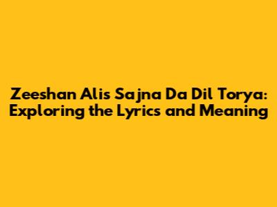 Hey music lovers! Ever gotten a song stuck in your head that just hits different? Well, for many, that song is Zeeshan Ali's 'Sajna Da Dil Torya'. It's got that catchy vibe, that emotional depth, and that perfect blend of music and storytelling that makes you wanna hit replay again and again. So, let's dive deep, shall we? We're gonna explore the lyrics, unpack the meaning, and maybe even discover why this song has resonated with so many, becoming a total earworm.