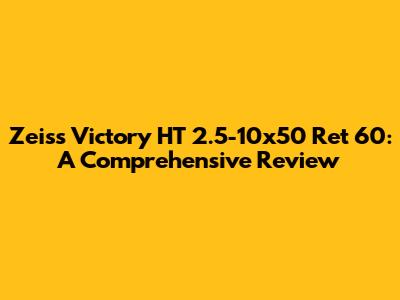 Hey guys! Today, we're diving deep into the Zeiss Victory HT 2.5-10x50 Ret 60 rifle scope. This scope is a top-tier option for serious hunters and shooters, and we're going to break down exactly why. We'll cover everything from its optical performance and build quality to its features and how it performs in real-world situations. If you're considering investing in a high-end scope, you've come to the right place. Let's get started!