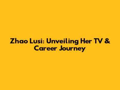 Zhao Lusi: Unveiling Her TV & Career Journey