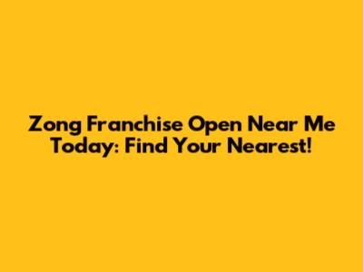 Zong Franchise Open Near Me Today: Find Your Nearest!